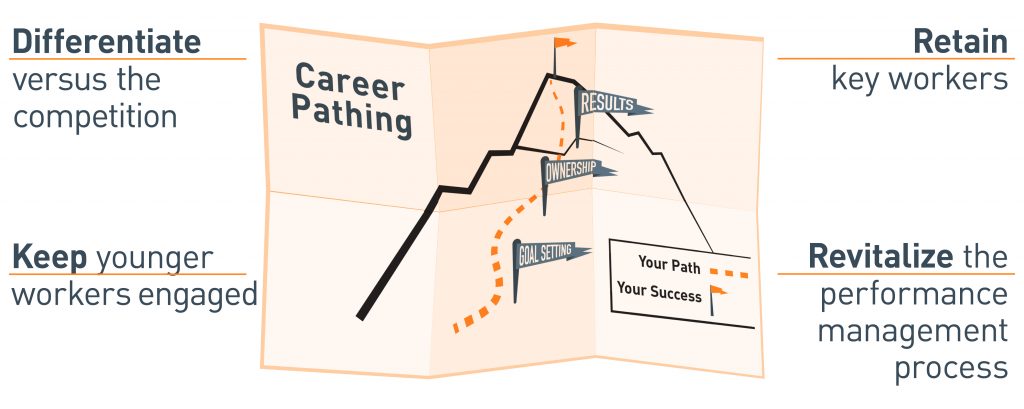 Often employees leave their jobs because there is no clear path for them to advance, or they are not sure how to rise to the position they desire. Career pathing is a great way to increase employee retention and grow talent organically, because it provides both employees and employers with a clear roadmap, outlining what it takes for workers to move from their current position to where they want to be. It also empowers employees to take ownership of their career performance within the company and aligns their career goals with the strategic goals of the organization. This not only helps the organization achieve its goals, but also helps the organization in the following ways: