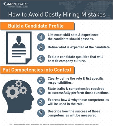 “There are many factors that come into play when determining whether someone is a suitable candidate, including their skill set and background, as well as how well they fit within the corporate culture,” says Nancy Halverson, general manager, franchise operations for MRINetwork. “To avoid the risk of costly hiring mistakes, there are key steps companies need to take – starting with getting a clearer picture of who their ideal candidate is.”