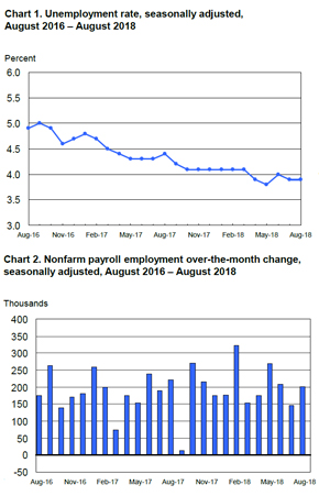 This figure stands well above the 147,000 new positions created in July (downwardly revised from an initial estimate of 157,000) and also exceeds the median prediction by Bloomberg-surveyed economists, who expected to see 190,000 jobs added during the month. Meanwhile, the unemployment rate held fast to its July figure of 3.9 percent (about 6.2 million unemployed persons actively looking for work) in August, and this did slightly fall behind the estimate of economic experts Reuters polled, who predicted a drop to 3.8 percent.